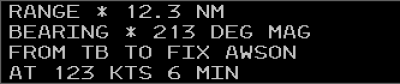 If you left clicked on an aircraft, AT 123 KTS (travel speed), 6 MIN (till the aircraft reaches AWSON)